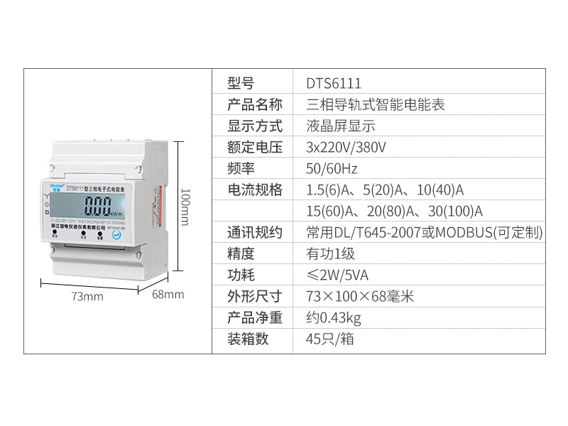 DTS6111、DSS6111型三相導(dǎo)軌式電能表4P(RS485通訊接口)