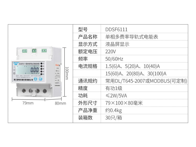DDSF6111單相導軌式多費率電能表(4P)